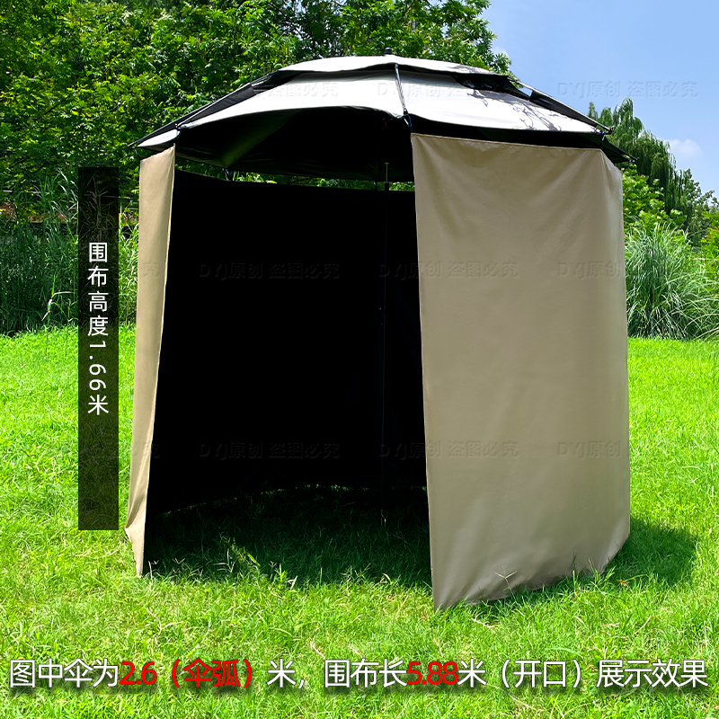 淘宝挂钩黑胶围布钓鱼伞围挡户外伞防晒防风防雨遮阳露营围帐摆摊黑坑