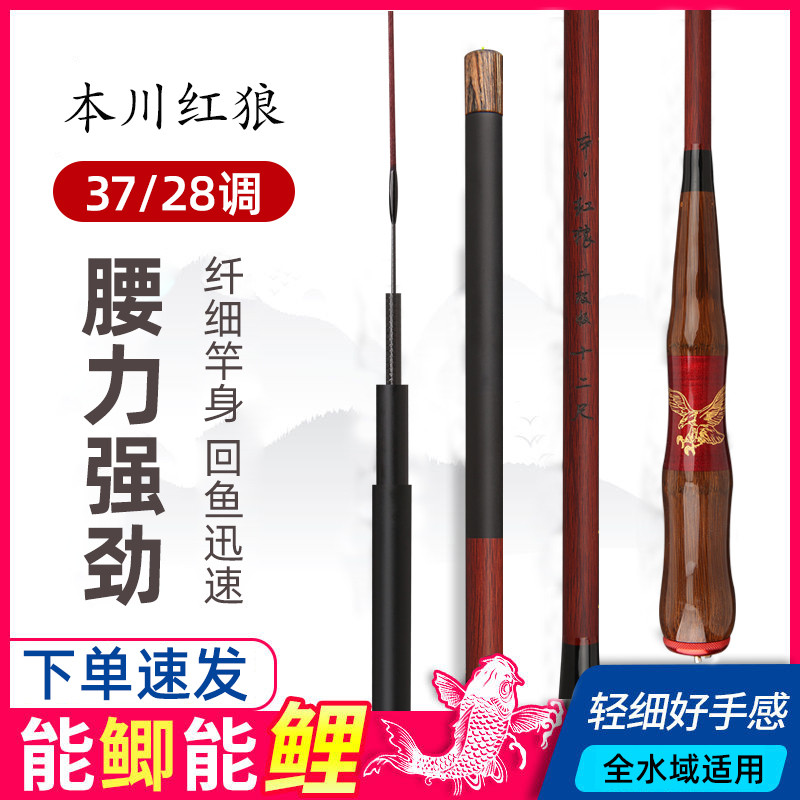 天猫红狼鲫鱼杆超轻超细超硬28调37调手杆碳素鲫竿长节台钓钓鱼杆手杆