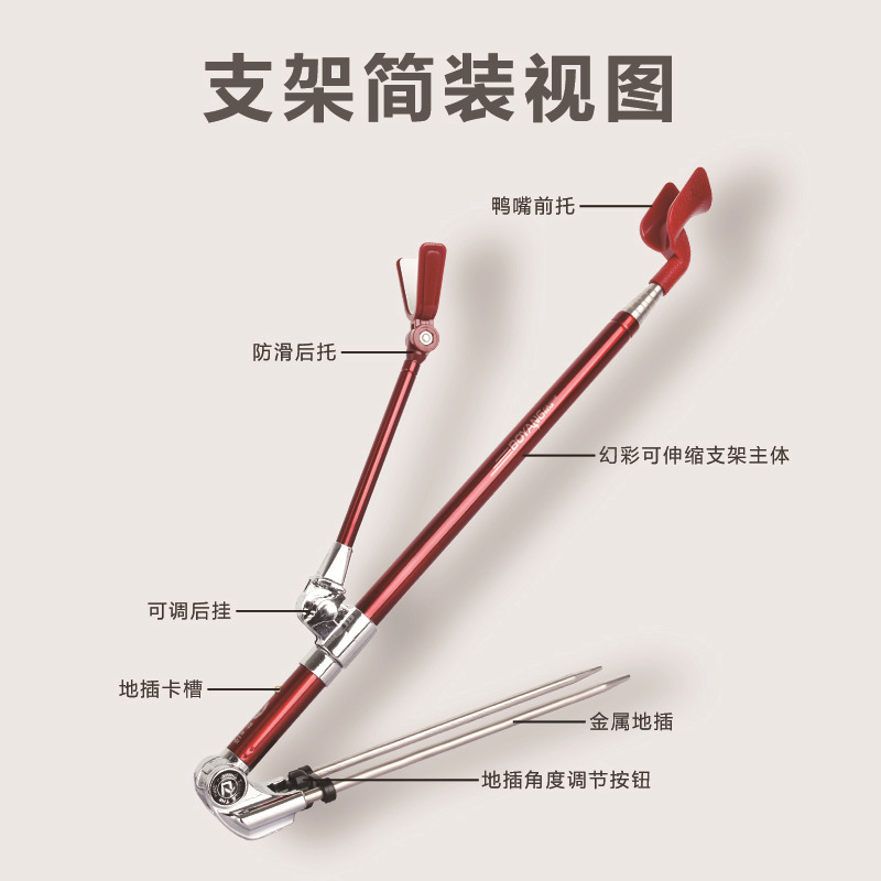 淘宝渤洋AC不锈钢支架钓鱼杆架 钓箱钓椅炮台地插两用AC1.5-2.3米