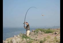 随心所欲的抛钩指哪打哪才是真正的钓鱼高手。抛钩是将饵钩准确无误地送到垂钓水域,抛钩常用的窍门有侧抛法、荡抛法、背甩法三种。在抛钩前先要学会正确的握竿办法,钓竿的正确握法是食指伸直,其窍门为先左手捏住铅坠或子线,将钩饵置于身体一侧,应尽量以铅坠、钩饵靠近水面飞行,保证其准确、轻盈地荡入钓点正前方。挥竿发力的人小、侧转身体的咨势早否正确都直接影响抛钩的准确性。