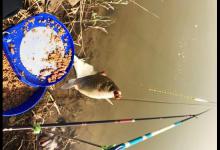 饵料一下水,疯了,浮漂给我跳了一支“华尔兹”,也难怪,天气这么热水深又只有1.5,小鱼肯定要出来活动筋骨。 小归小,但它也是鱼,还是得展示一下。