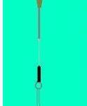二是怎样判断钩饵在水中的状态。我们首先将单钩挂上一粒比正常垂钓时稍大一点的饵料,将浮漂调到平水。当单饵调到平水时,就会浮漂下沉。也就是说我们挂上正常垂钓大小的双饵时,浮漂自然就会下沉。此时钩饵在水底基本上就是一饵触底,如图2 如果我们将浮漂上调平水状态,则钩饵在水底的状态基本如上,如果我们将浮漂上调至露出一到两目时,由于水线的延长和浮漂部分出水使其对钓组浮力的减弱,