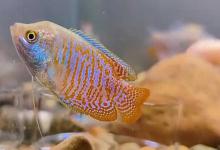 一、鱼种论述 丽丽鱼是著名的观赏鱼,学名拉利毛足鲈,别称电光丽丽、小丽鱼、加拉米鱼等,在生物分类学上属于动物界、脊索动物门、硬骨鱼纲、鲈形目、丝足鲈科、毛足鲈属小型淡水鱼类,常作观赏鱼饲养在鱼缸、水族箱或水族馆中,定型变种有紫丽丽鱼、红丽丽鱼、金丽丽鱼等。