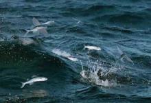一、鱼种论述 飞鱼是中小型经济鱼种,别称文鳐鱼、燕鳐鱼、燕儿鱼等,在生物分类学上属于动物界、脊索动物门、硬骨鱼纲、颌针鱼目、飞鱼科的统称,因能在水面短距离“飞行”而得名,最远“飞行”距离可达400多米,全世界共有50余种,代表鱼种有翱翔飞鱼、弓头燕鳐鱼、尖头燕鳐、真燕鳐等。